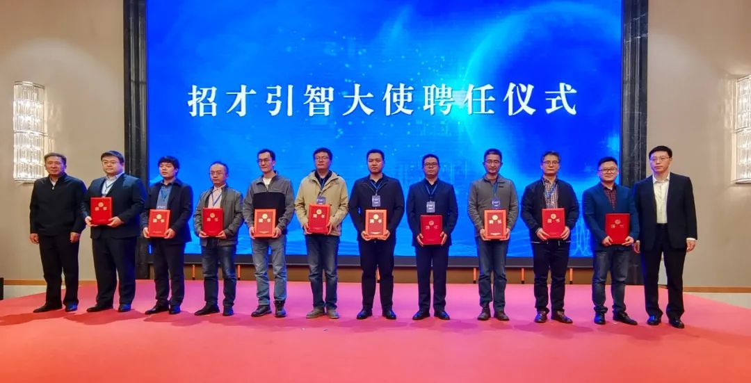 睢宁县委常委、组织部长张弥雷(右1),副县长徐锋华(左1)为嘉宾代表颁发睢宁县招才引智大使聘书