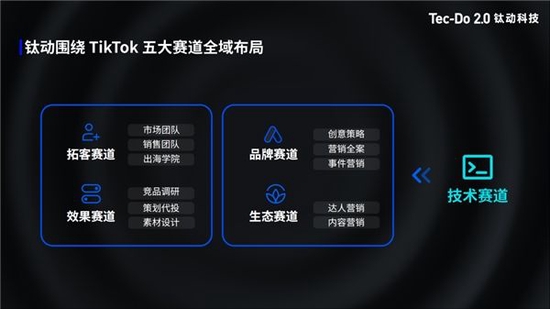 钛动科技在TikTok营销领域针对拓客赛道、效果赛道、品牌赛道、生态赛道以及技术赛道进行了深度布局。